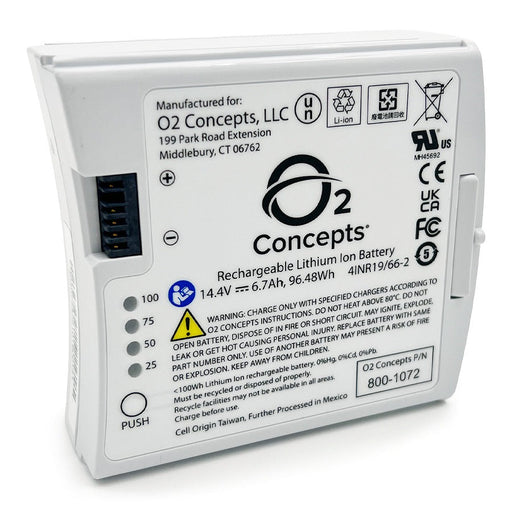 O2 ConceptsThis lightweight, rechargeable battery will last up to 4 hours on a pulse setting of 2 or 1.5 hours on a continuous setting of 1.5 *battery time va...